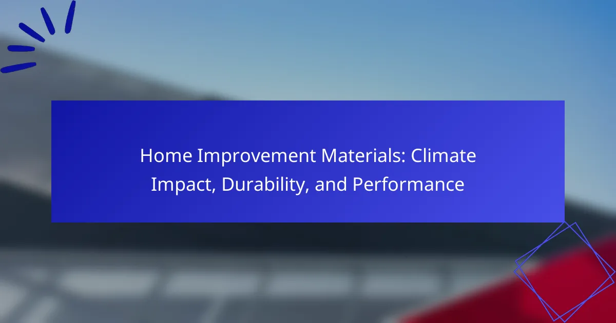 When selecting home improvement materials, it’s crucial to consider their climate impact, durability, and performance. Materials like recycled steel and eco-friendly insulation not only enhance energy efficiency but also withstand environmental stressors. By understanding performance metrics such as thermal ratings and moisture resistance, homeowners can make informed choices that improve longevity and reduce maintenance costs.